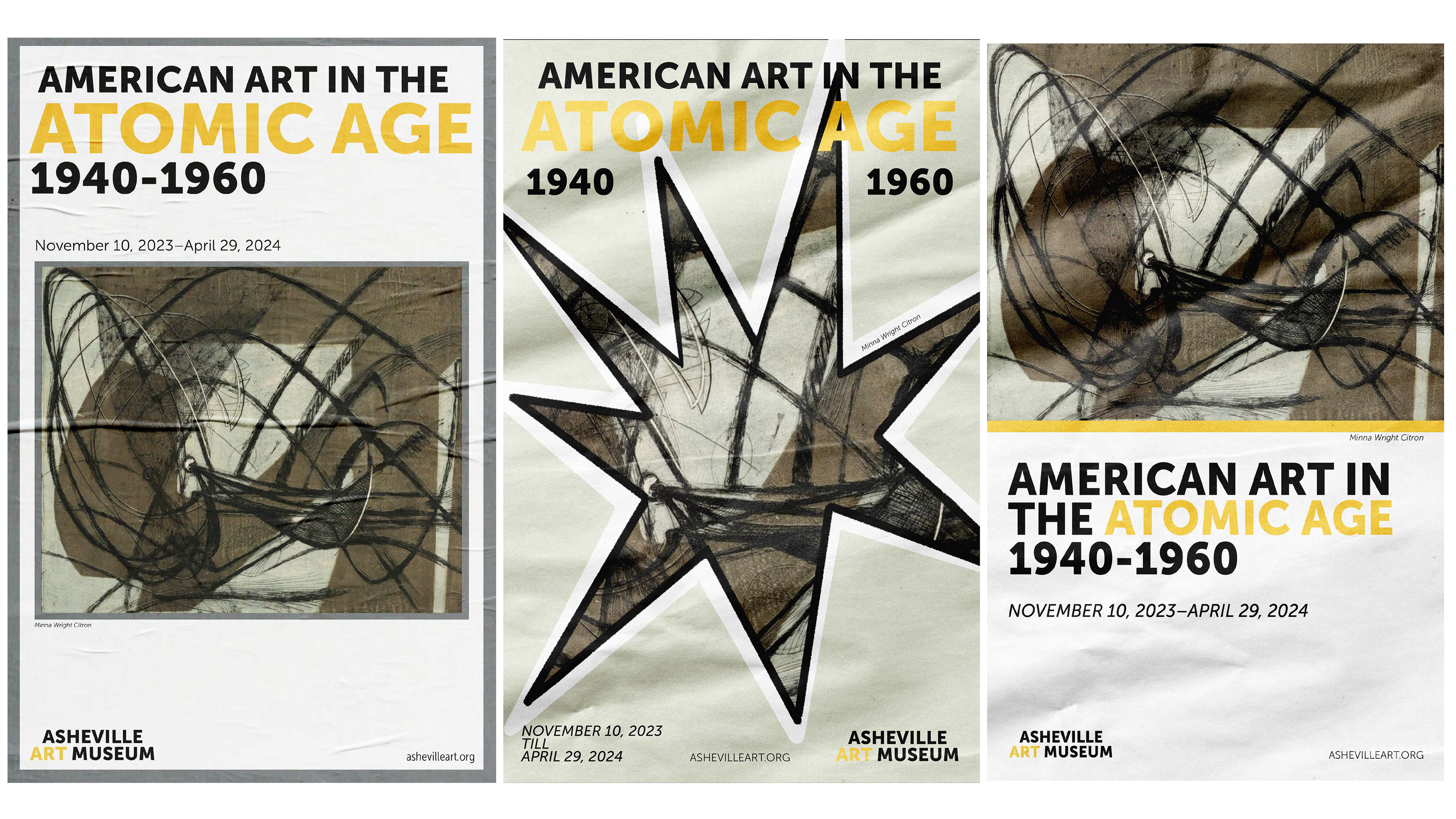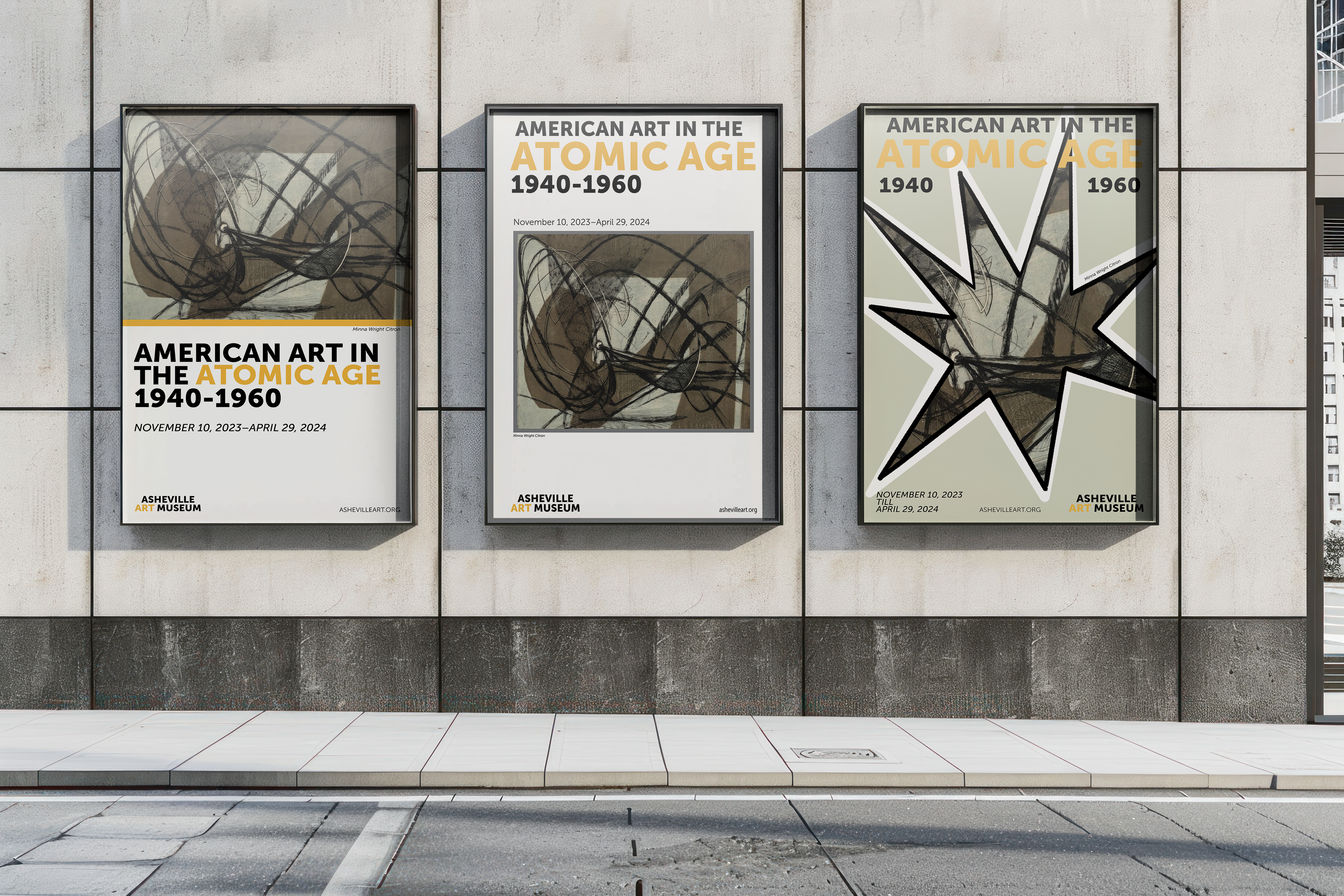 This series of posters were created to help promote one of the exhibits occurring at the Asheville Art Museum. Following their specific brand guide, posters were created that captured the feeling of the exhibit alongside the aesthetic of the museum.