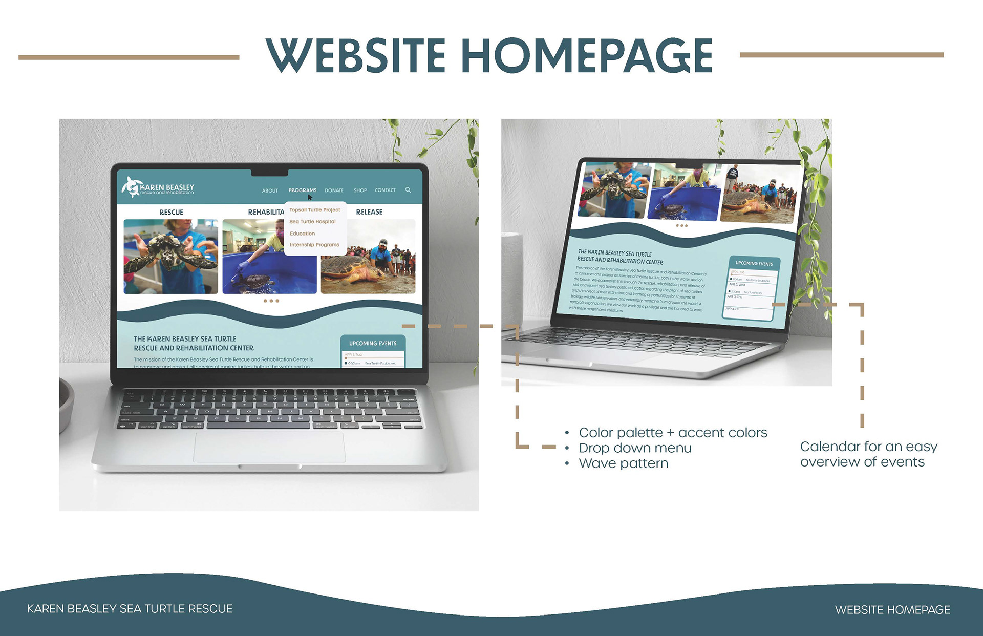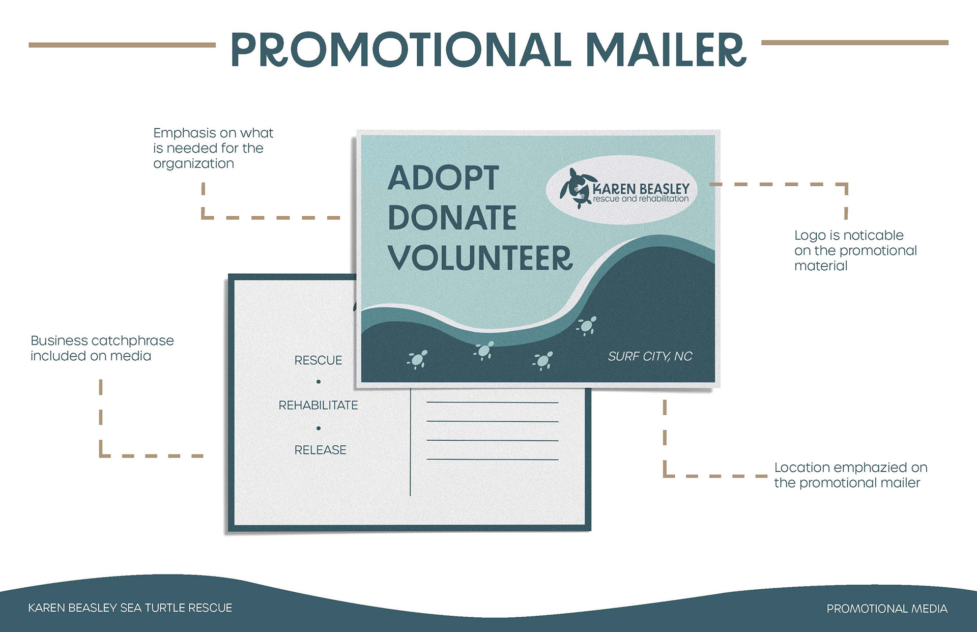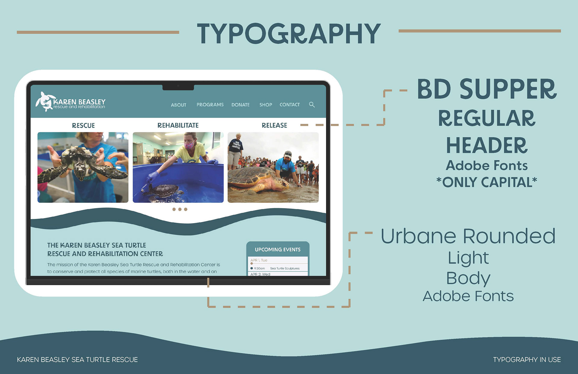 This project was focused around doing a re-branding for the non-profit organization Karen Beasley Sea Turtle Rescue and Rehabilitation Center. The goal was to create a cohesive, modern, and noticeable design that would help capture the voice of the organization. Brand guidelines and a mix of promotional material were created to showcase this redesign. A junior designer helped create other additional material based on the brand guidelines given.